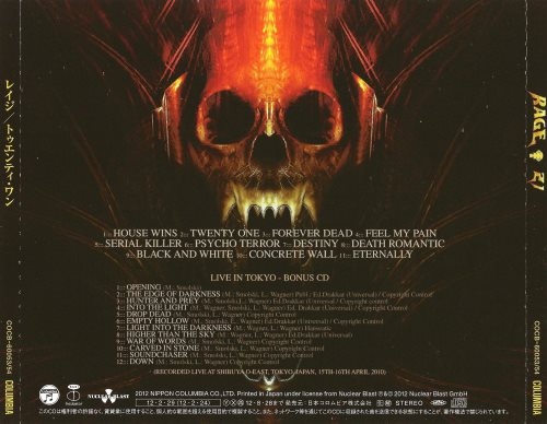 CD2: Live In Tokyo: 01. Opening 02. The Edge Of Darkness 03. Hunter and Prey 04. Into The Light 05. Drop Dead 06. Empty Hollow 07. Light Into The Darkness 08. Higher Than The Sky 09. War Of Worlds 10. Carved In Stone 11. Soundchaser 12. Down Time: 57:59 + 70:15