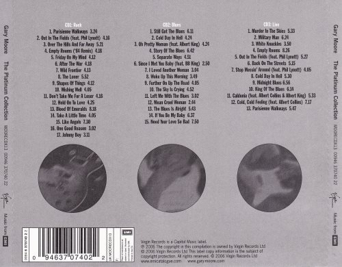 CD3: Live 01. Murder In The Sky 02. Military Man 03. White Knuckles 04. Empty Rooms 05. Out In The Fields (feat. Phil Lynott) 06. Back On The Streets 07. Stop Messin' Around (feat. Phil Lynott) 08. Cold Day In Hell 09. Midnight Blues 10. King Of The Blues 11. Caldonia (feat. Albert Collins & Albert King) 12. Cold, Cold Feeling (feat. Albert Collins) 13. Parisienne Walkways Time: 79:30 + 71:41 + 76:34