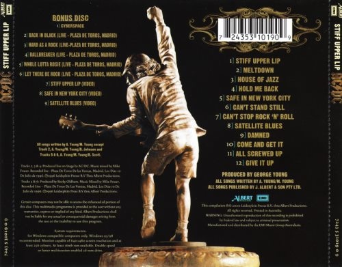 Tracklist: CD1: Stiff Upper Lip 01. Stiff Upper Lip 02. Meltdown 03. House Of Jazz 04. Hold Me Back 05. Safe In New York City 06. Can't Stand Still 07. Can't Stop Rock 'n' Roll 08. Satellite Blues 09. Damned 10. Come And Get It 11. All Screwed Up 12. Give It Up